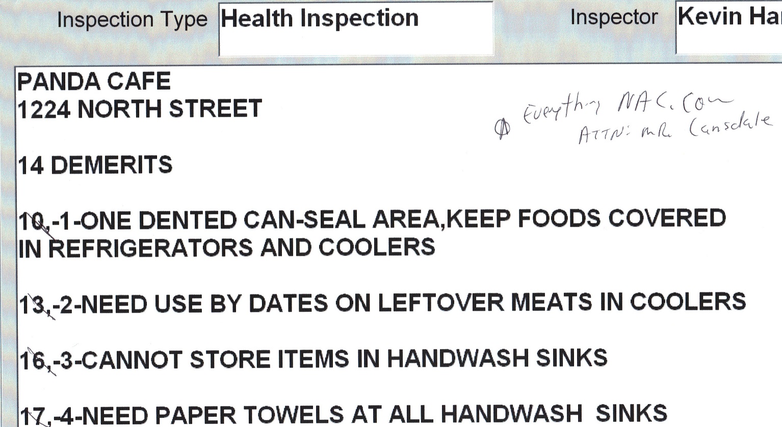 ← May 21 – May 27: Health Inspections