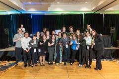 Stephen F. Austin State University students accept the third-place overall award at the 2025 District 10 American Advertising Federation National Student Advertising Competition held during the Advent10n conference April 9-12 in Arlington. SFA's interdisciplinary team, composed of graphic design, marketing and mass communication students, also earned the Judge's Award titled "You're Killin' It" for teamwork and execution. Pictured, from left, are Christian McClure, senior graphic design major from Austin; Cristian Roldan, junior graphic design major from Lufkin; Holland Davis, senior marketing major from Kingwood; Juliana Frigo, junior graphic design major from Abilene; Daphne Ortiz, junior graphic design major from Lufkin; Bradley Cavanaugh, senior English major with a marketing minor from Corrigan; Riley Troxel, senior graphic design major from Katy; KJ Gast, junior graphic design major from Nacogdoches; Julio Espinoza, junior graphic design major from Henderson; AAF award presenter; Melvin Gonzalez Acevedo, senior graphic design major from Miles; Asher McAlister, junior graphic design major from McKinney; Jacob Crosby, sophomore graphic design major from Kyle; Isabel Jedmears, senior marketing major from Little Elm; Laney Wise, senior graphic design major from Keller; Kassie Cressman, senior graphic design major from Lake Jackson; and Katie Carcerano, junior mass communication major with a marketing minor from Bridge City. Not pictured is Judith Johnson, senior graphic design major from Houston.
