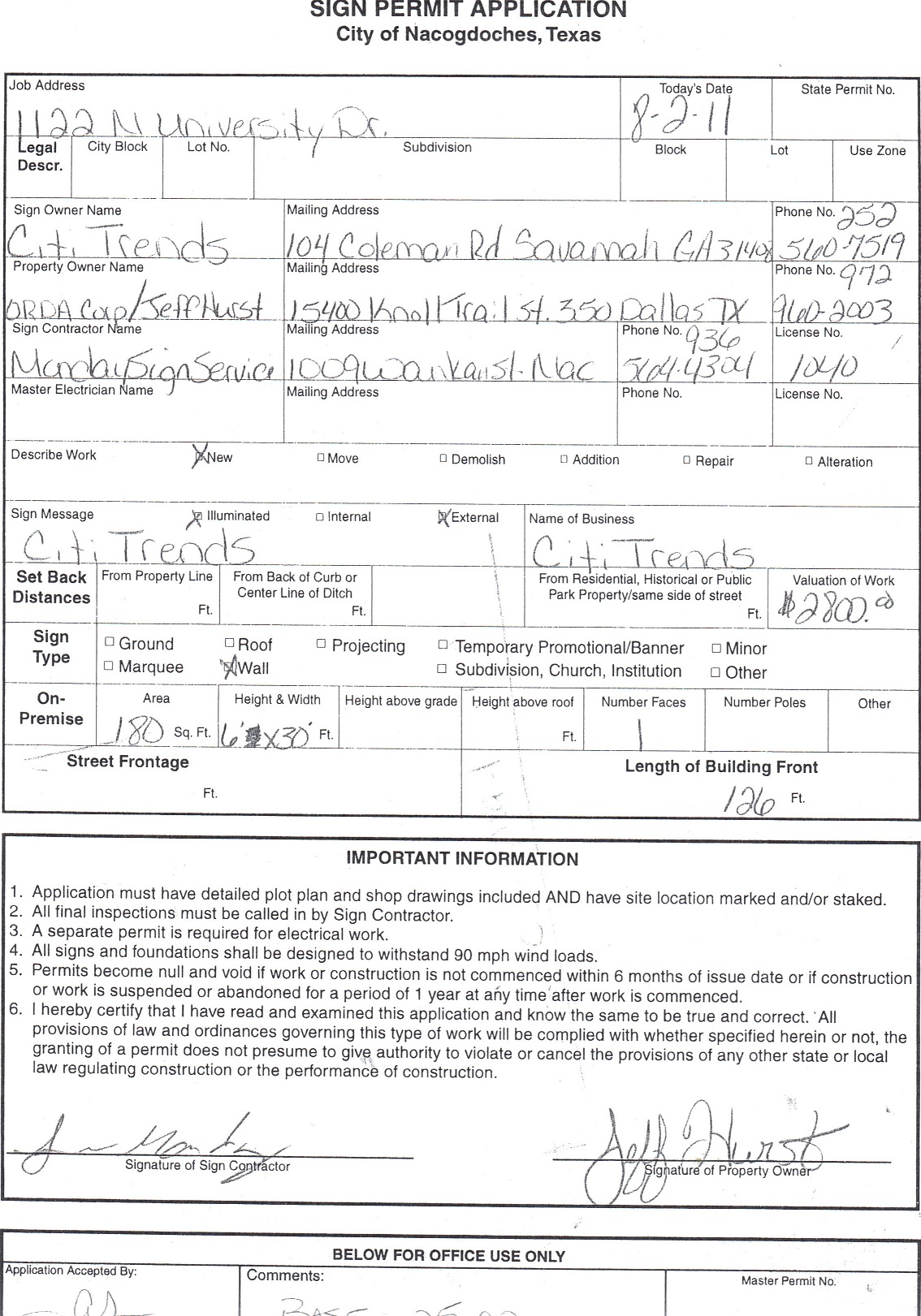 ← August 1 – August 5: Building and Sign Permits