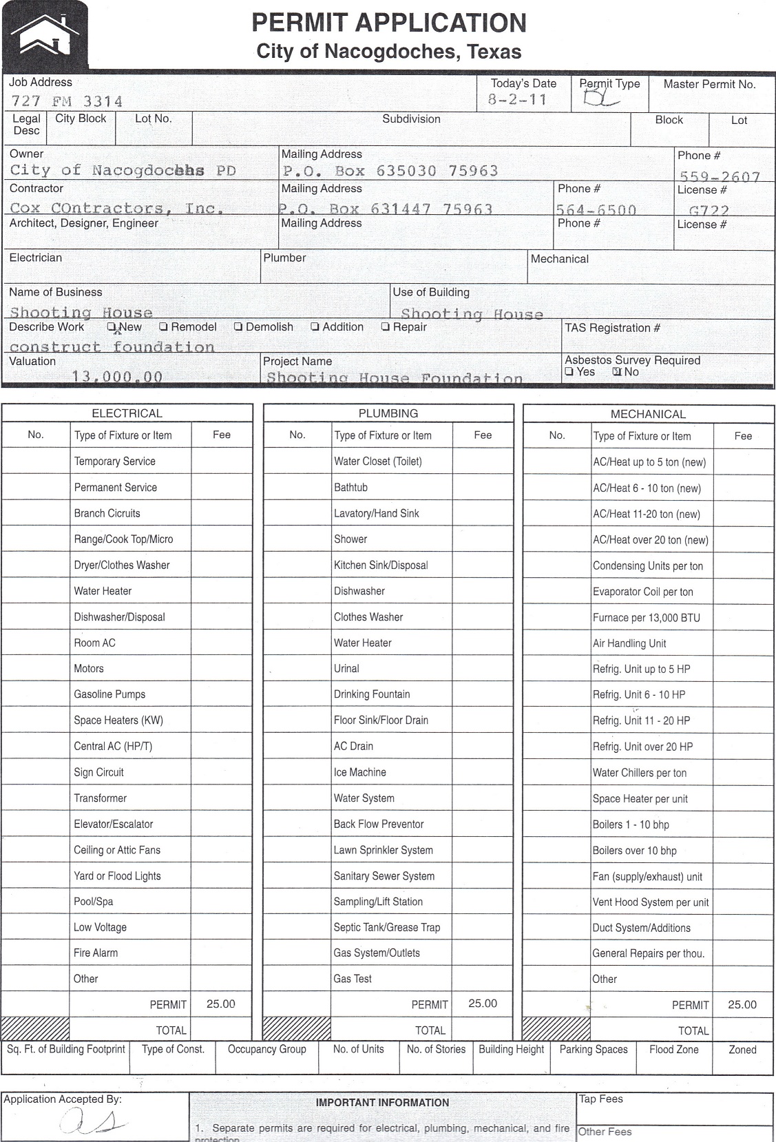 ← August 1 – August 5: Building and Sign Permits