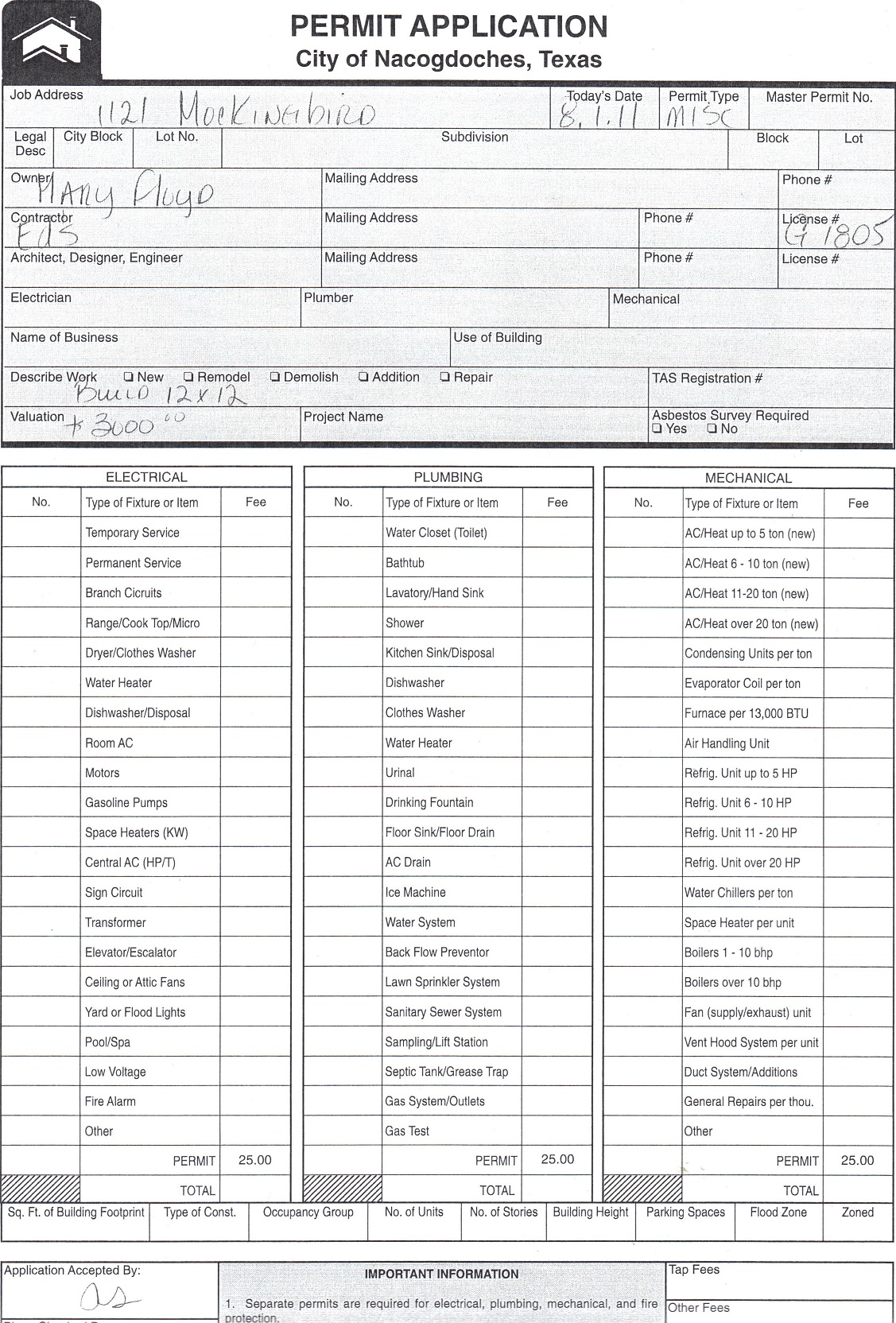 ← August 1 – August 5: Building and Sign Permits