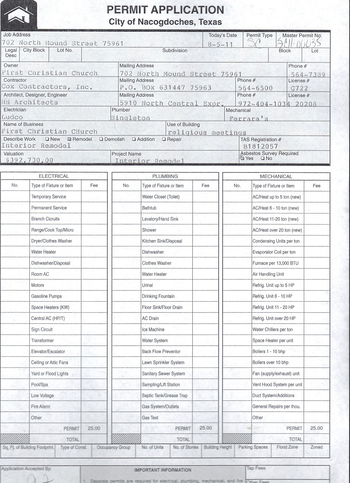 ← August 22 – August 26: Building and Sign Permits