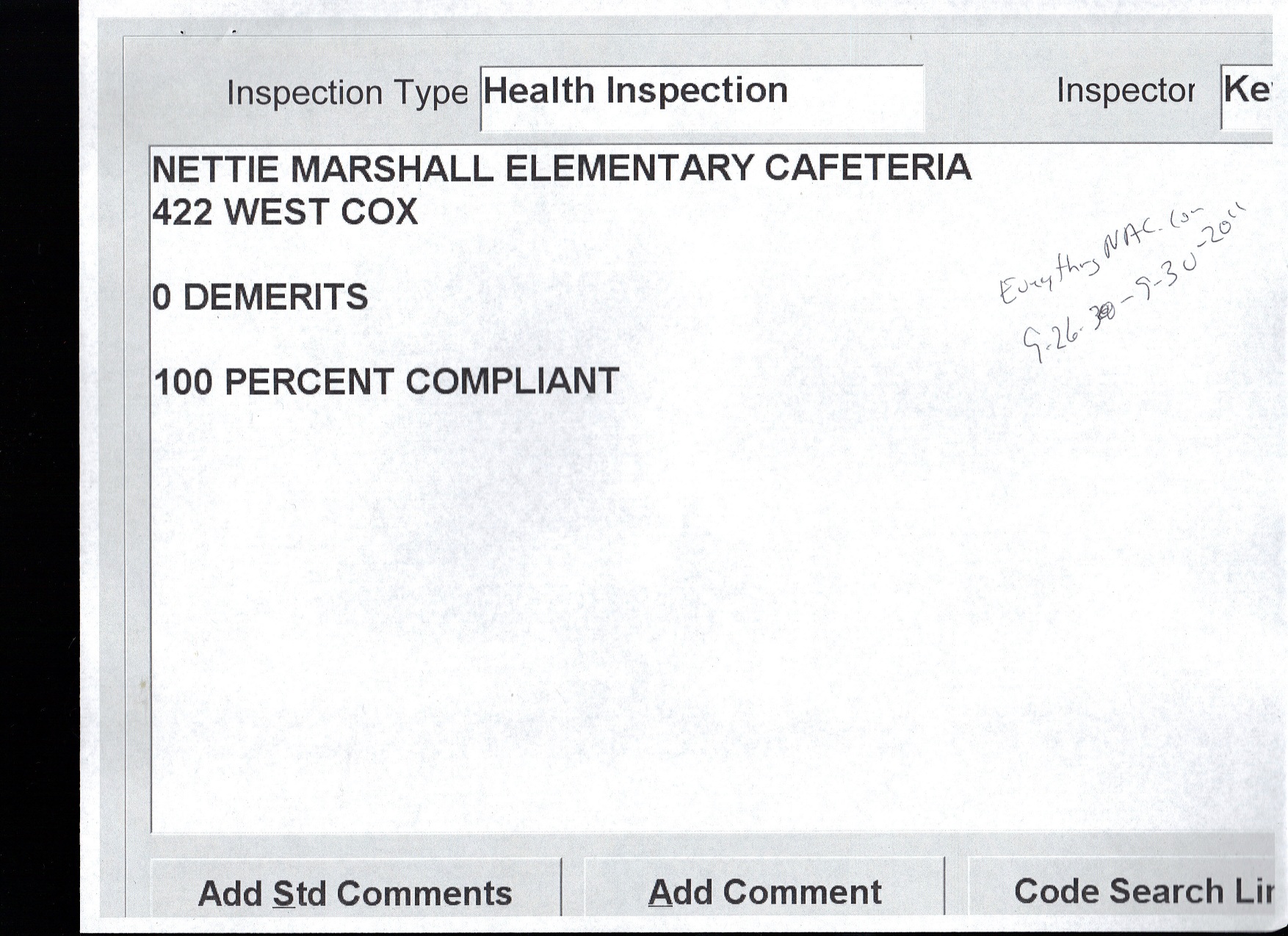 ← September 26 – September 30: Health Inspections