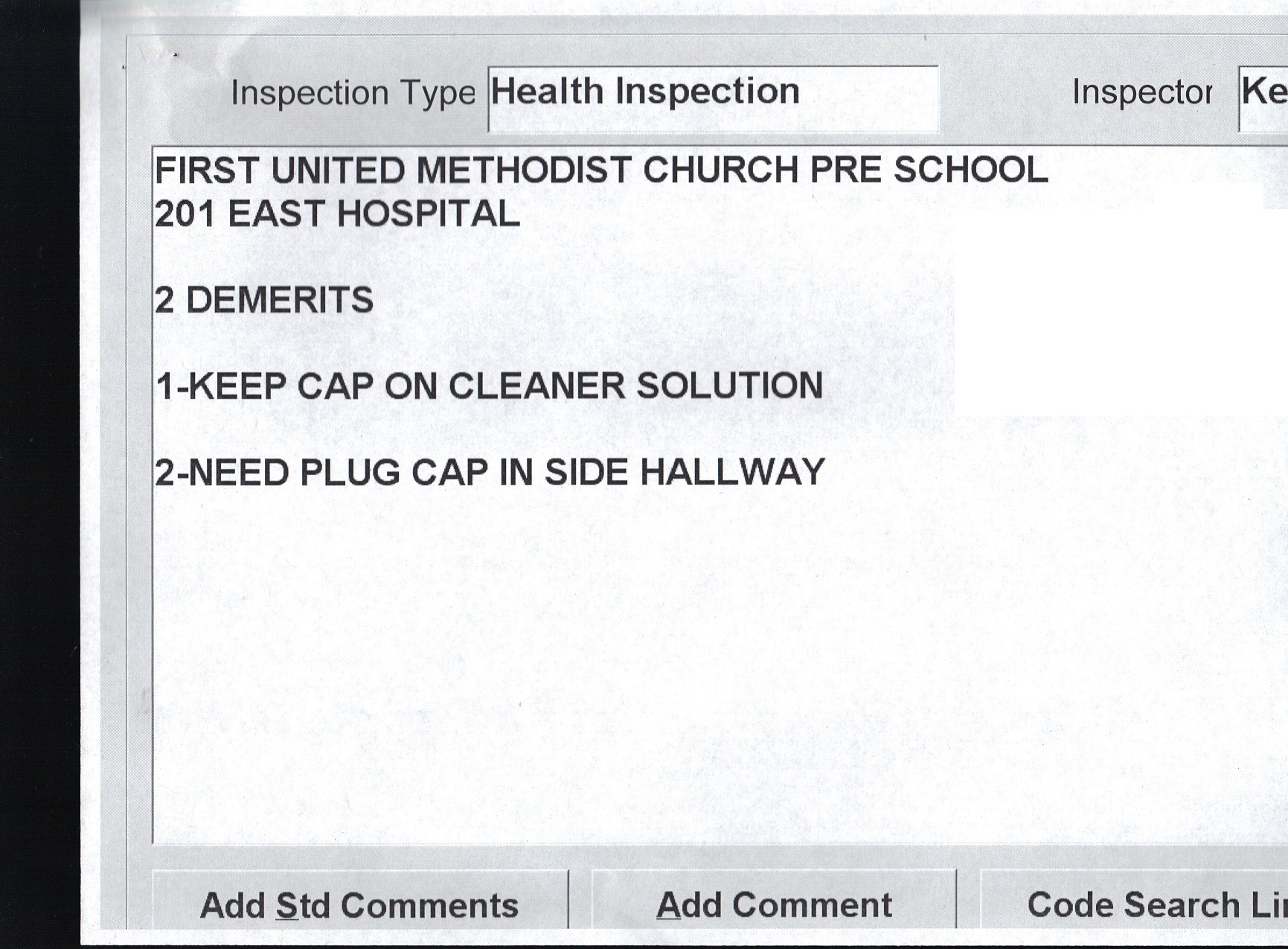 ← October 31 – November 4: Health Inspections