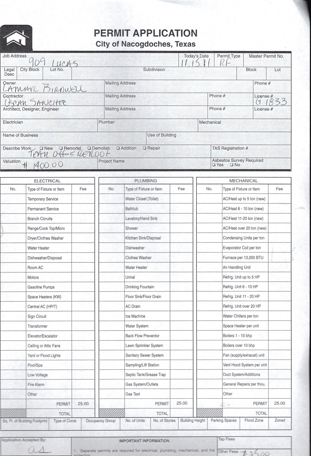 ← November 7 – November 18: Building and Sign Permits