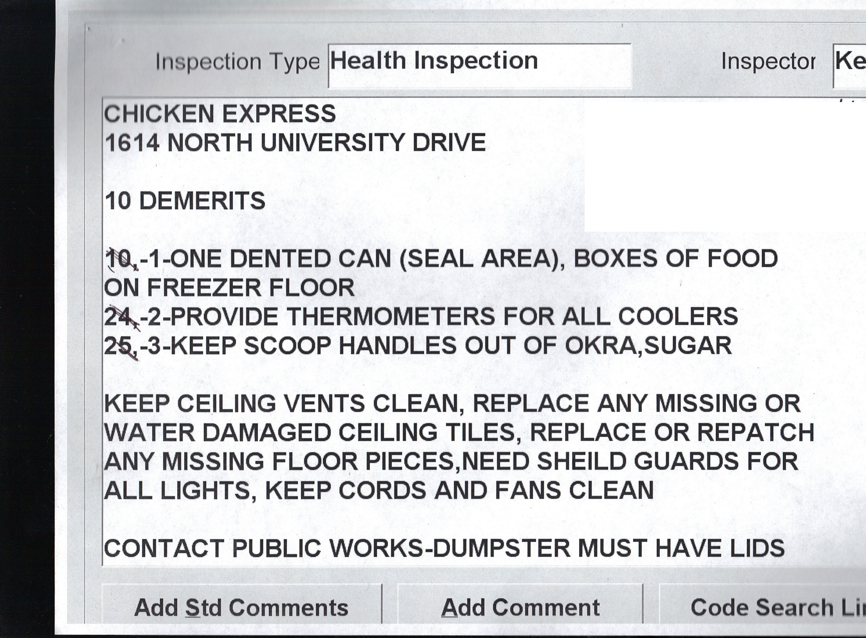 ← January 2 – January 6: Health Inspections
