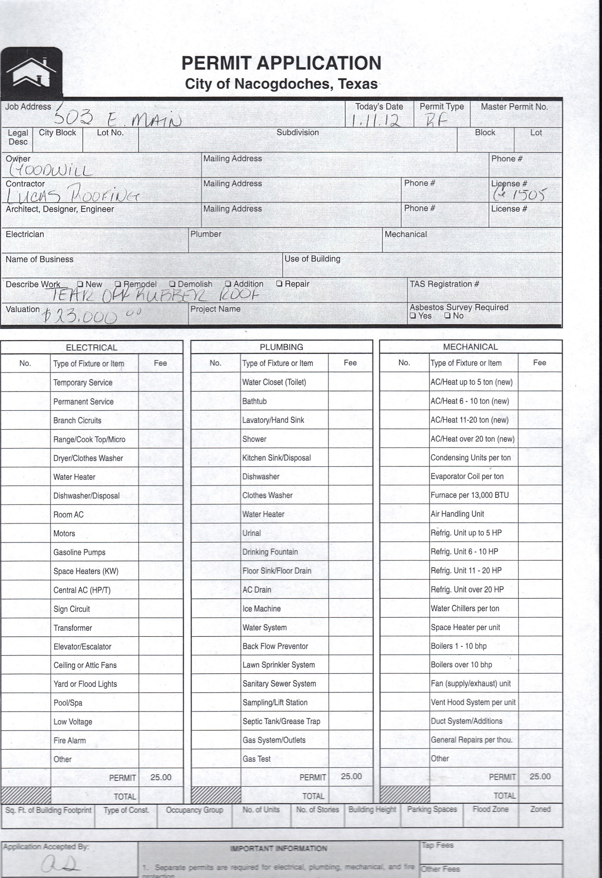 January 9 – January 13: Building and Sign Permits