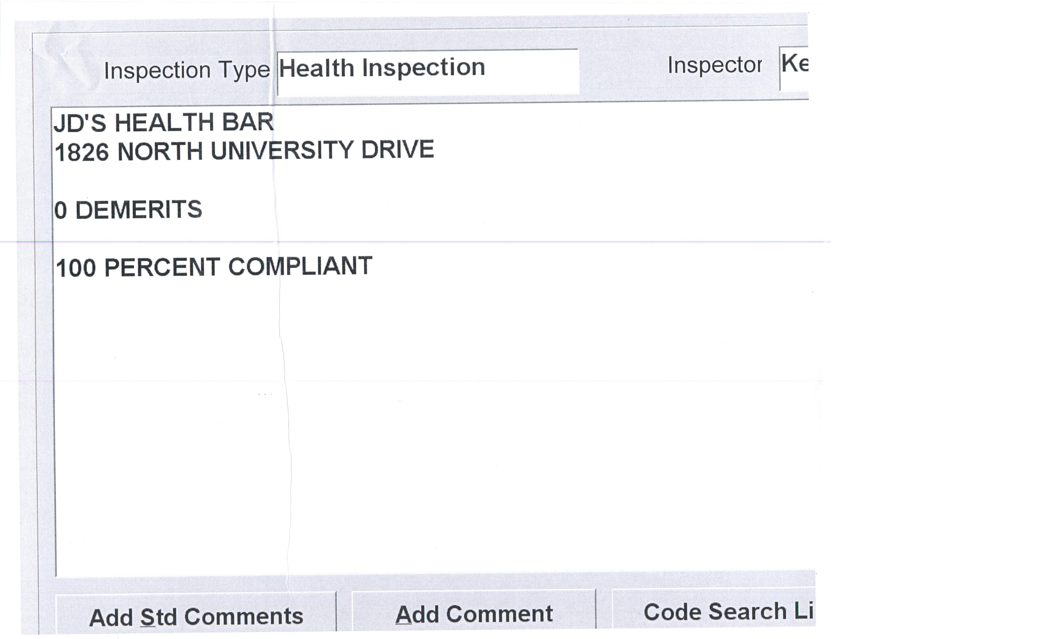 ← October 15 – October 26: Health Inspections