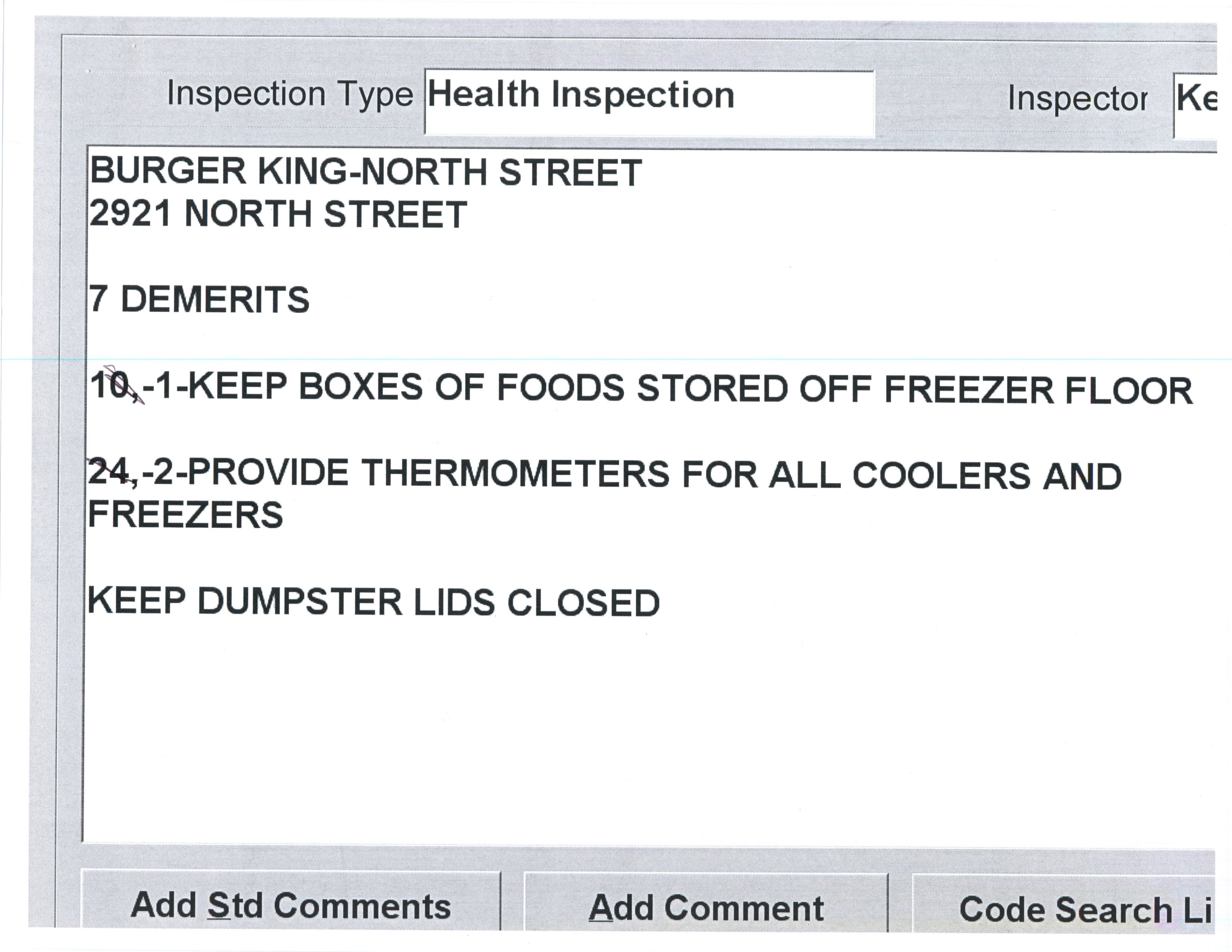 ← November 11 – November 29: Health Inspections